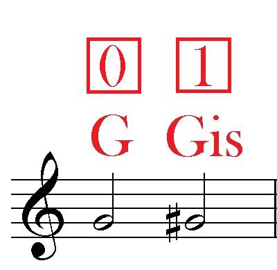 Teises näites on G-noodile (lahtine 3. keel) diees pandud. Diees muutis noodi pool tooni kõrgemaks ehk ühe vahe võrra kõrgemaks. Noodi nimi on nüüd Gis (ehk dieesiga G) ja see asub 3. keelel 1. vahes.